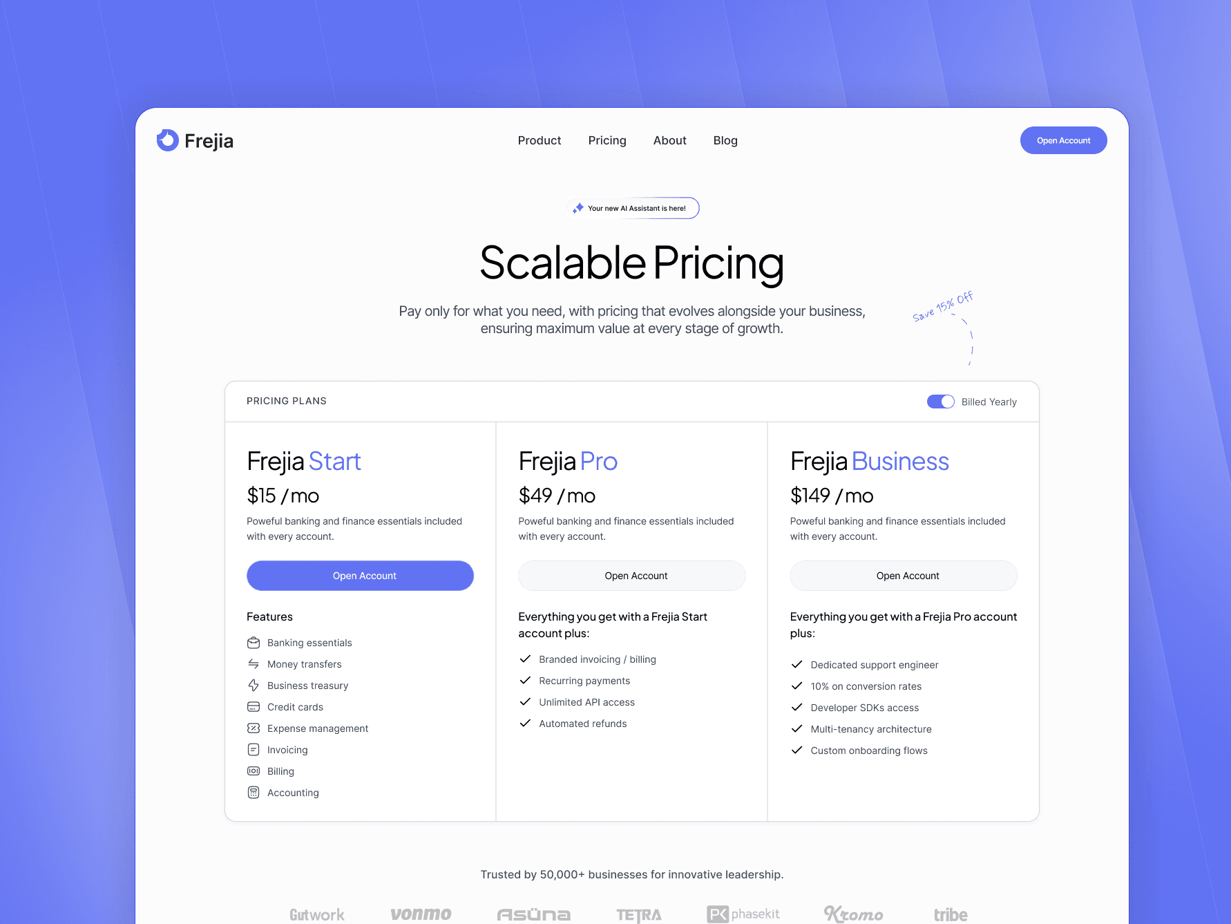 Introducing Frejia — a sleek and powerful Framer template designed for modern fintech, digital banking, financial service and tech platforms.
