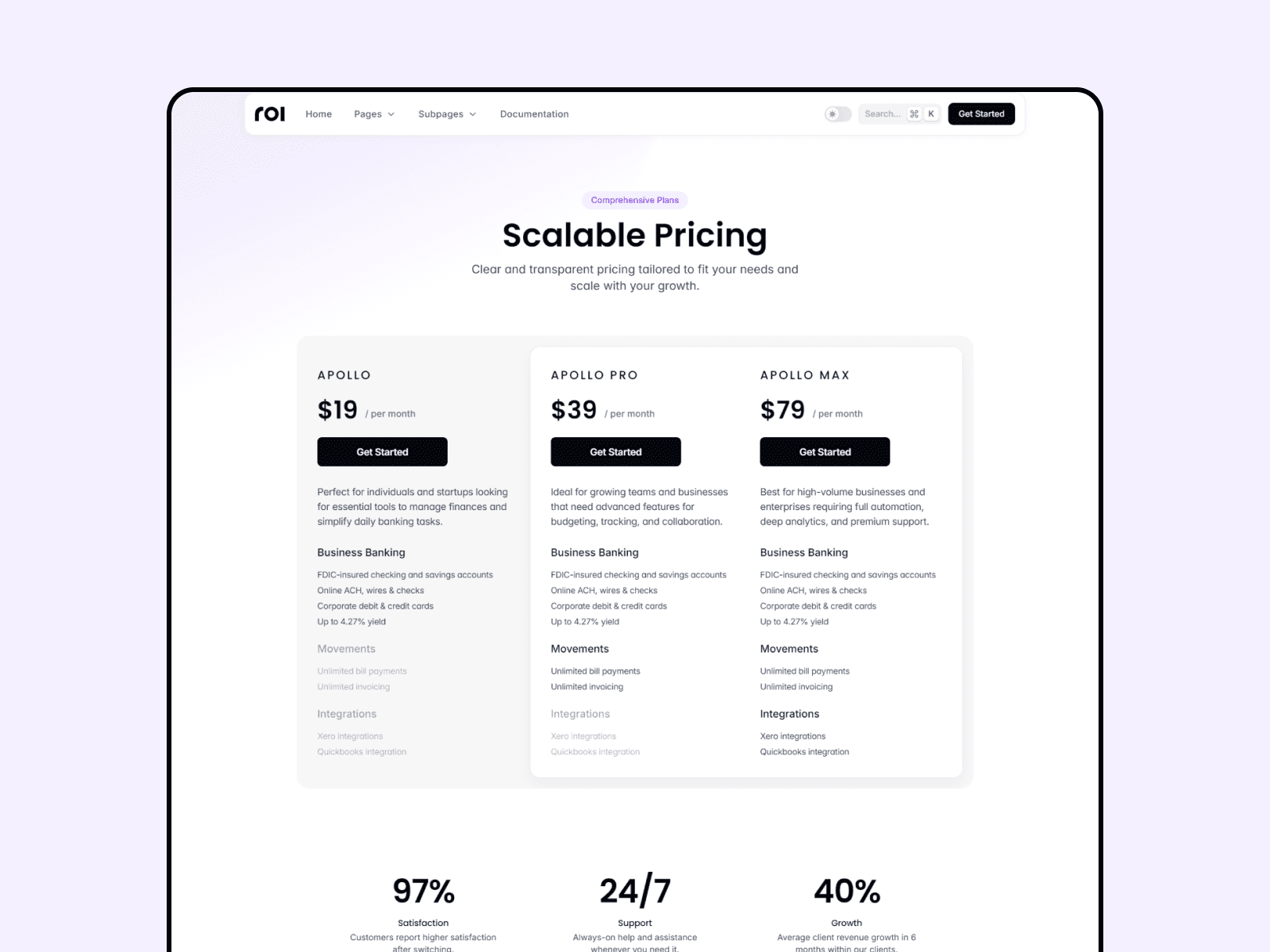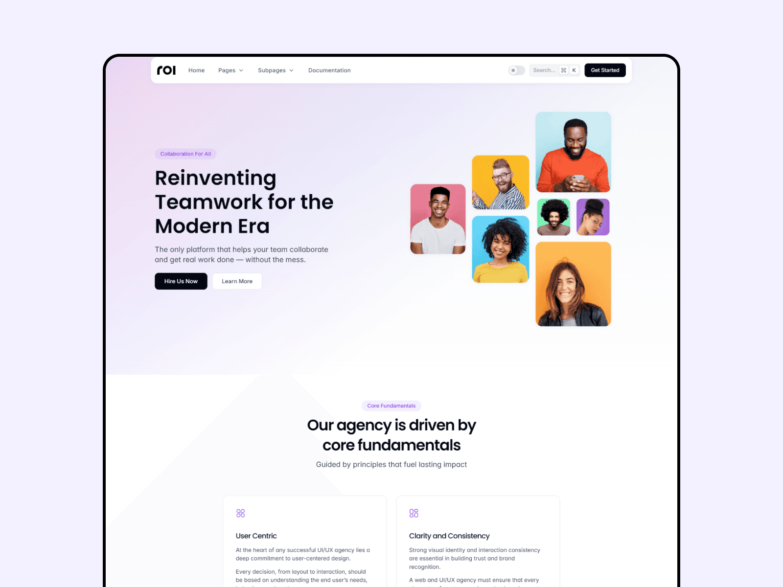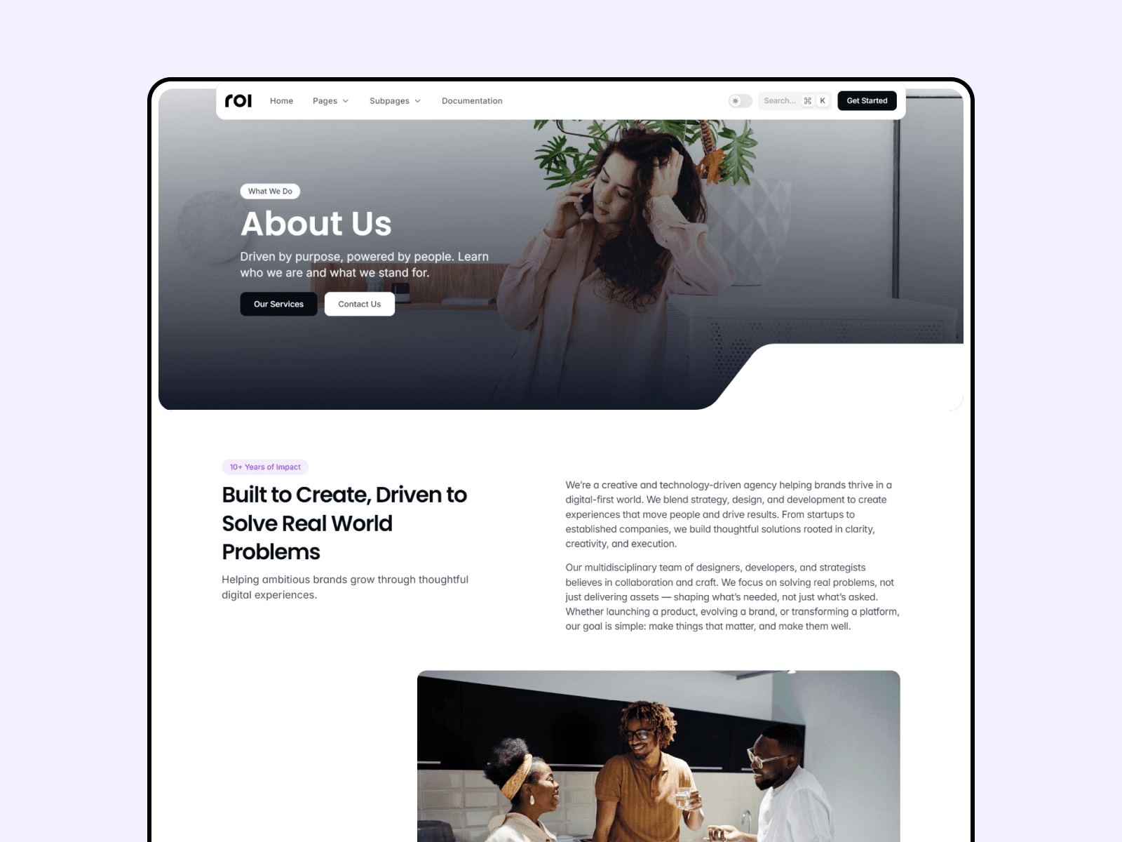 Roi helps your business stand out with a clean, modern design system and thoughtful page layouts. Whether you're launching a new product, scaling an agency, or building out a content hub, Roi gives you the flexibility and structure to showcase your brand at its best.